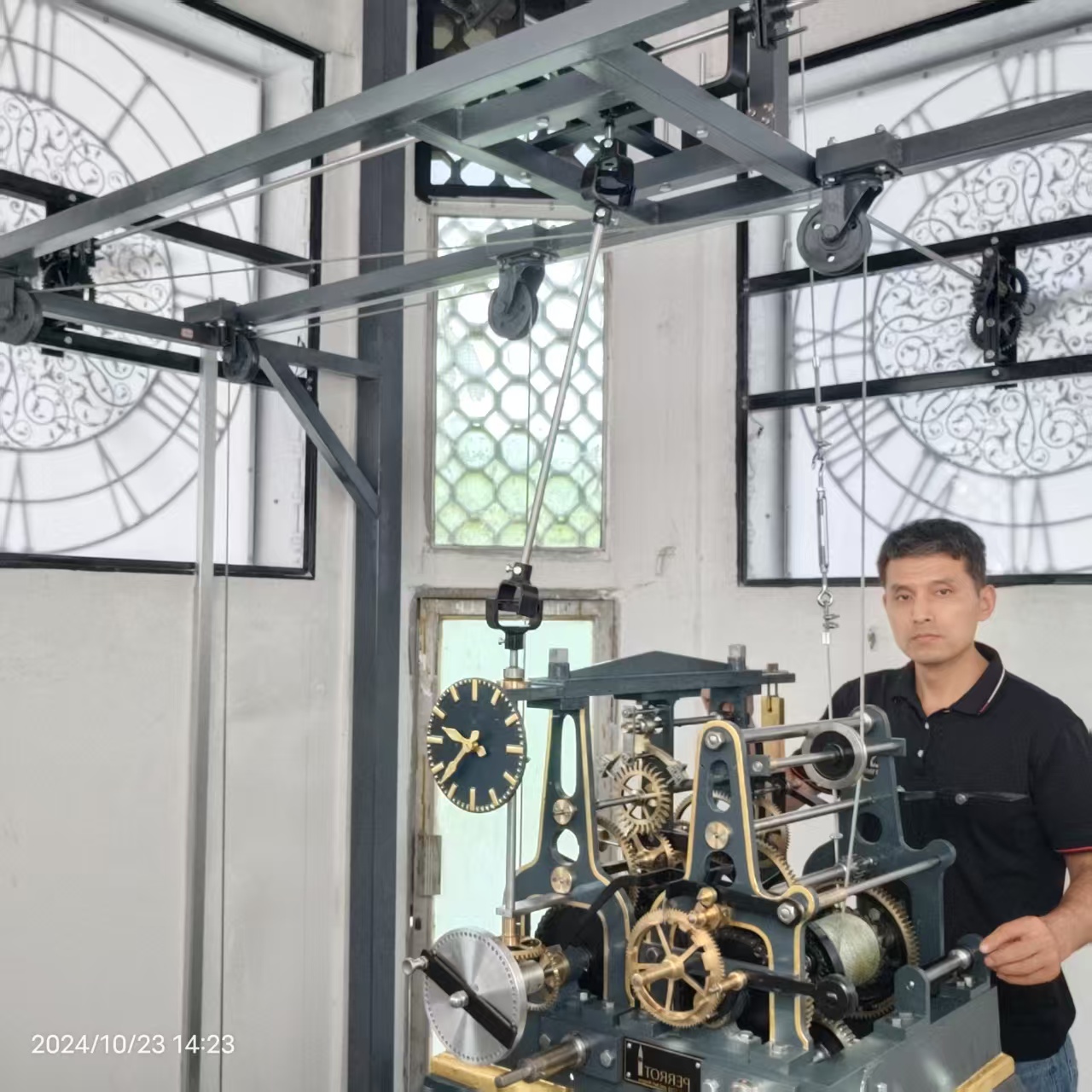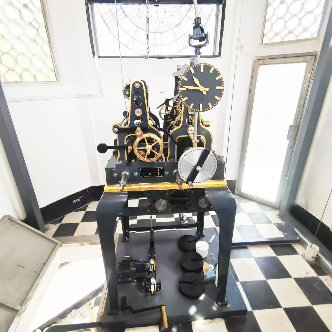 中德合作生产的机械塔钟,按客户要求专门定制,除走时外可以增加机电结合型敲钟及音乐报时功能。